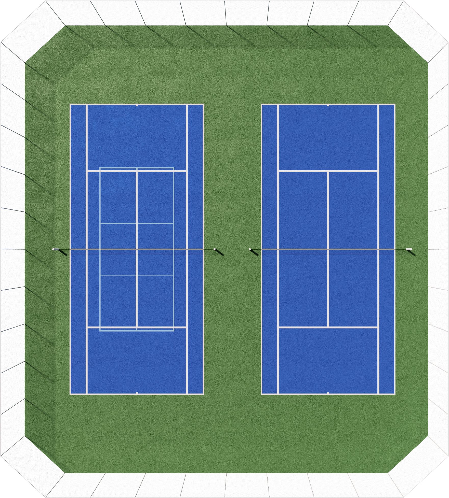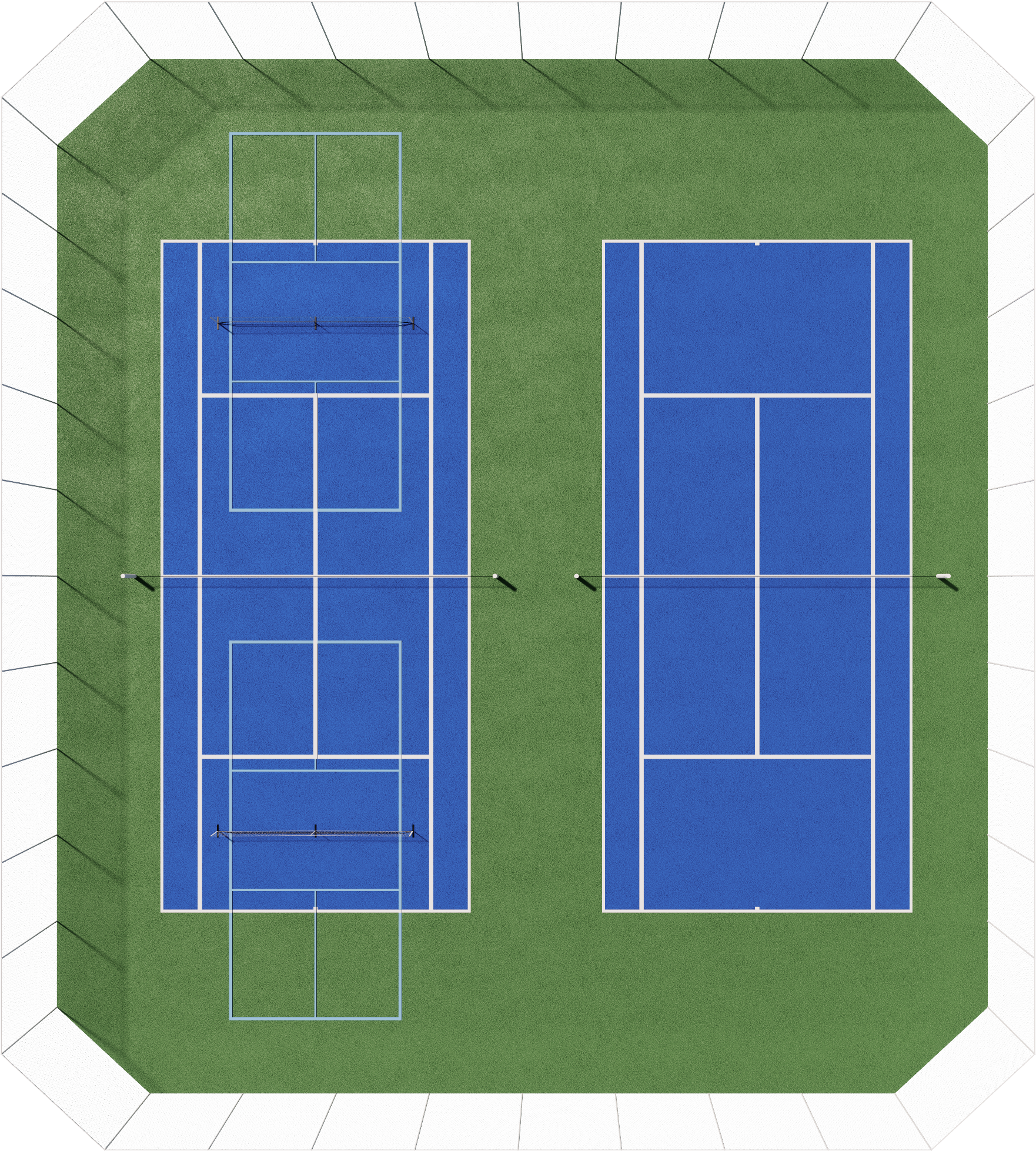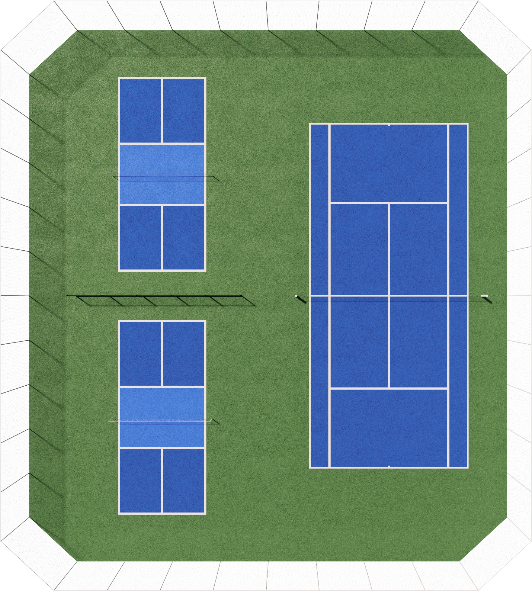 A double tennis court (120’ x 108’) can be converted to: